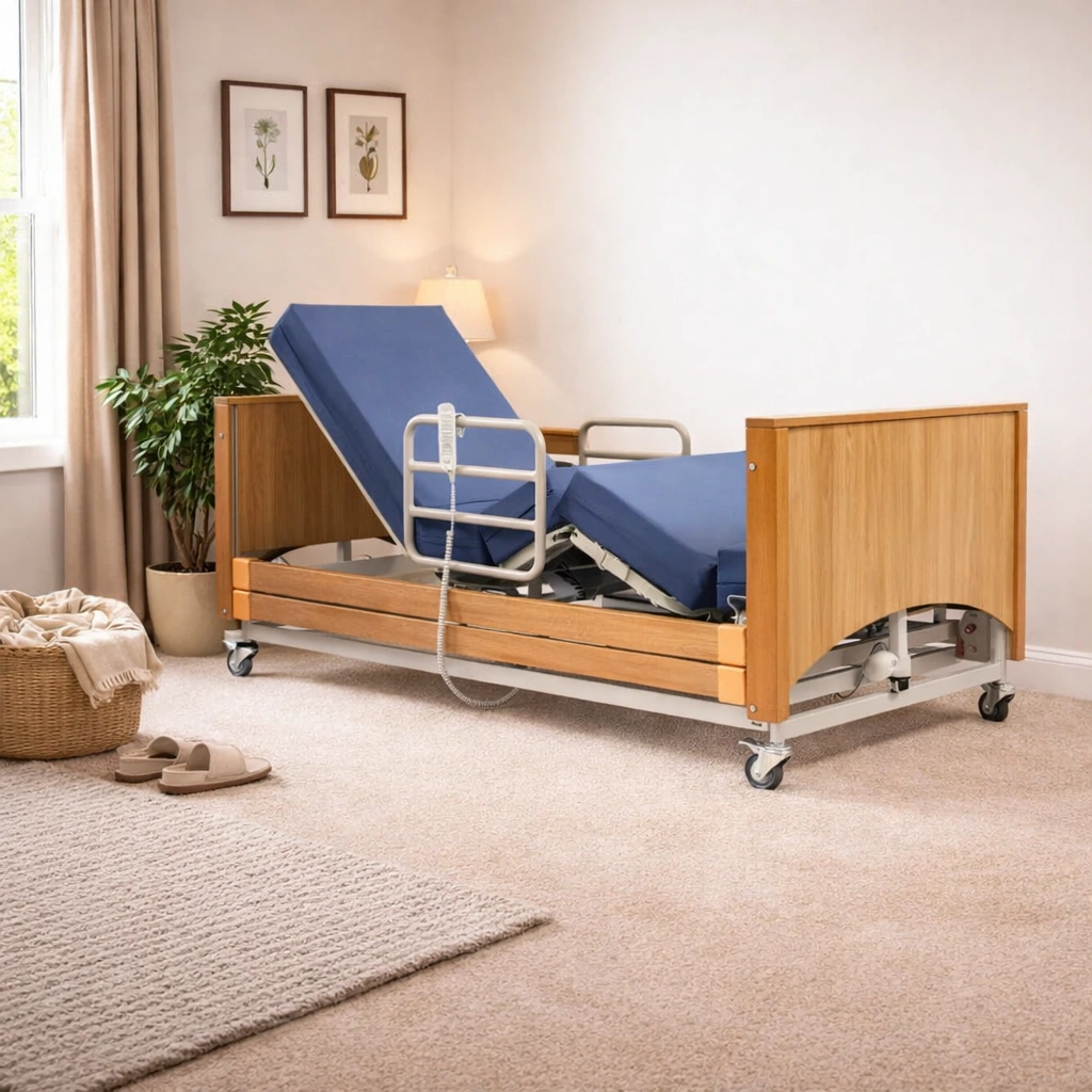 Equipped with a user-friendly handset, individuals can effortlessly transition from lying down to a seated position, seamlessly rotate, and stand up from the bed. With sturdy handrails ensuring added safety during transfers, users can navigate in and out of bed with confidence.